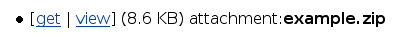 Щоб зробити на сторінці посилання на вкладення, вкажіть attachment:назвафайлу.ext або [[attachment:файл з пробілами.txt]].